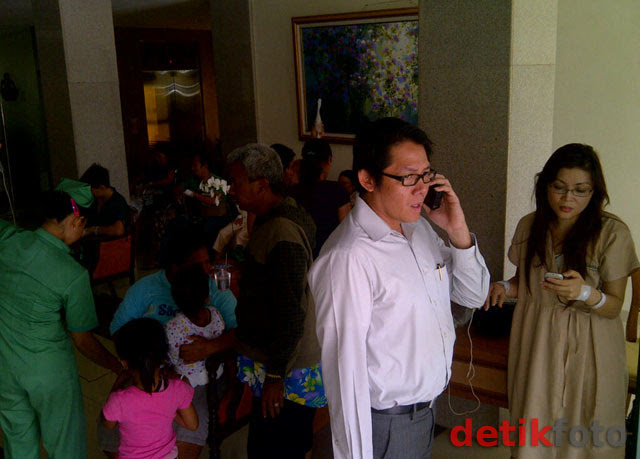 Para penghuni RS Kasih Ibu mulai dari dokter hingga pasien berhamburan ke luar.